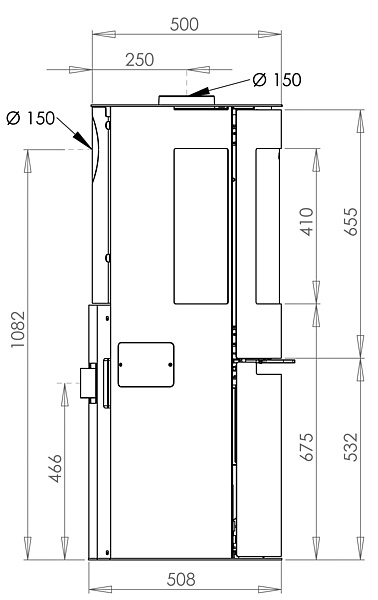 Flue outlet diameter top/rear